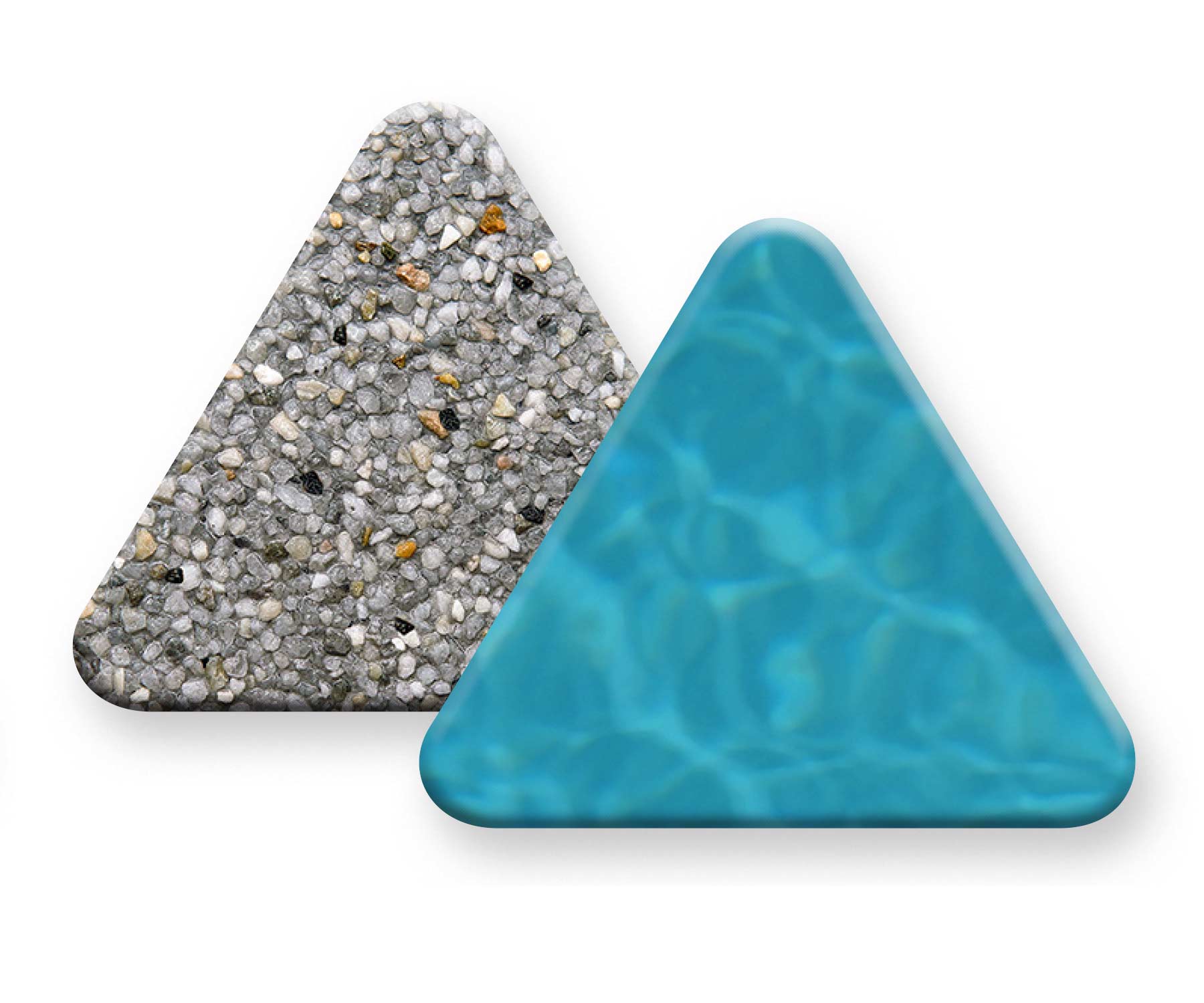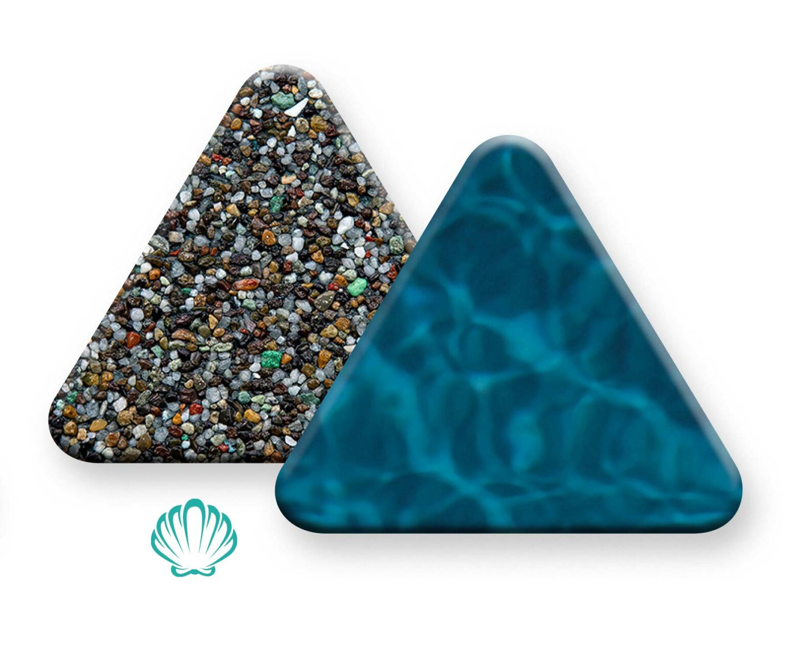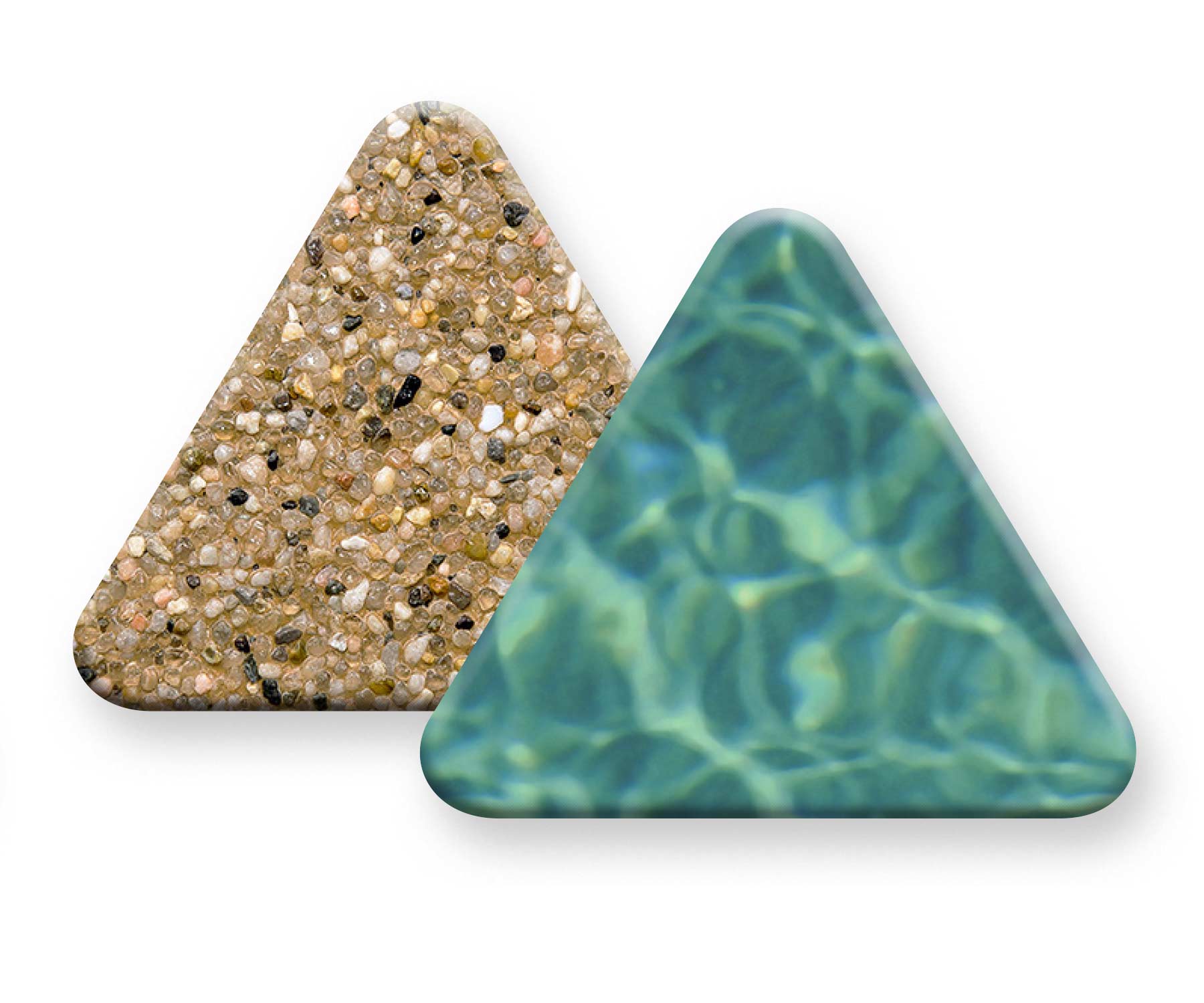 The actual water colour is produced by the refraction of light as it passes through water reflecting with the pebble surface. As a result the shades deepen with the pool's depth to give the most natural look possible.