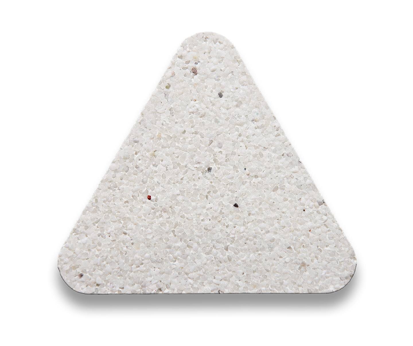A predominately grey finish accented with white, green, gold and brown pebbles produces a medium blue water color.