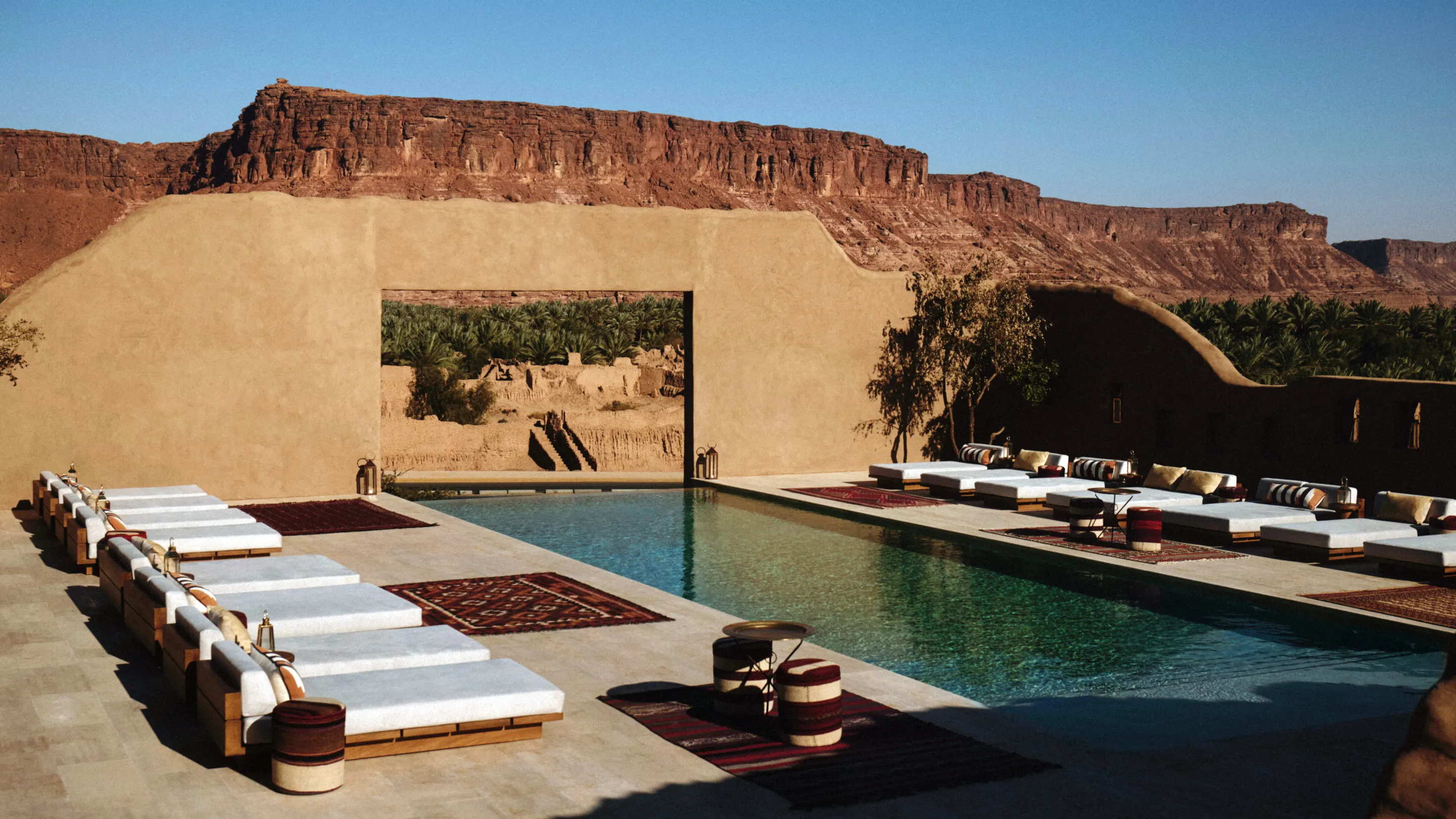 This fantastic place (DAR TANTORA) in KSA specified PebbleFina® as the finish for its pool remodel on the high profile pool. The chosen color, Sandy Beach, seamlessly integrates with the natural surroundings, creating a harmonious blend of aesthetics and landscape.